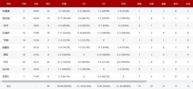 许晨妍17分钟,11中7,三分1中1,拿到18分4篮板,命中率63.6%,作为一名两米的中锋许晨妍的发挥已经趋于稳定。