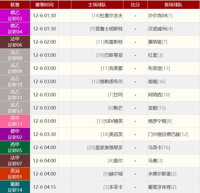 其他赛事比分: