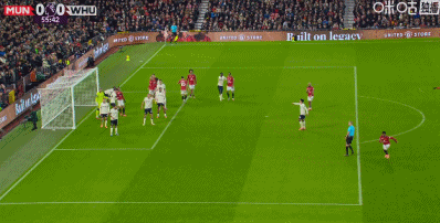 第58分钟,卡塞米罗打门被挡,达洛特得球补射入网!曼联1-0西汉姆联